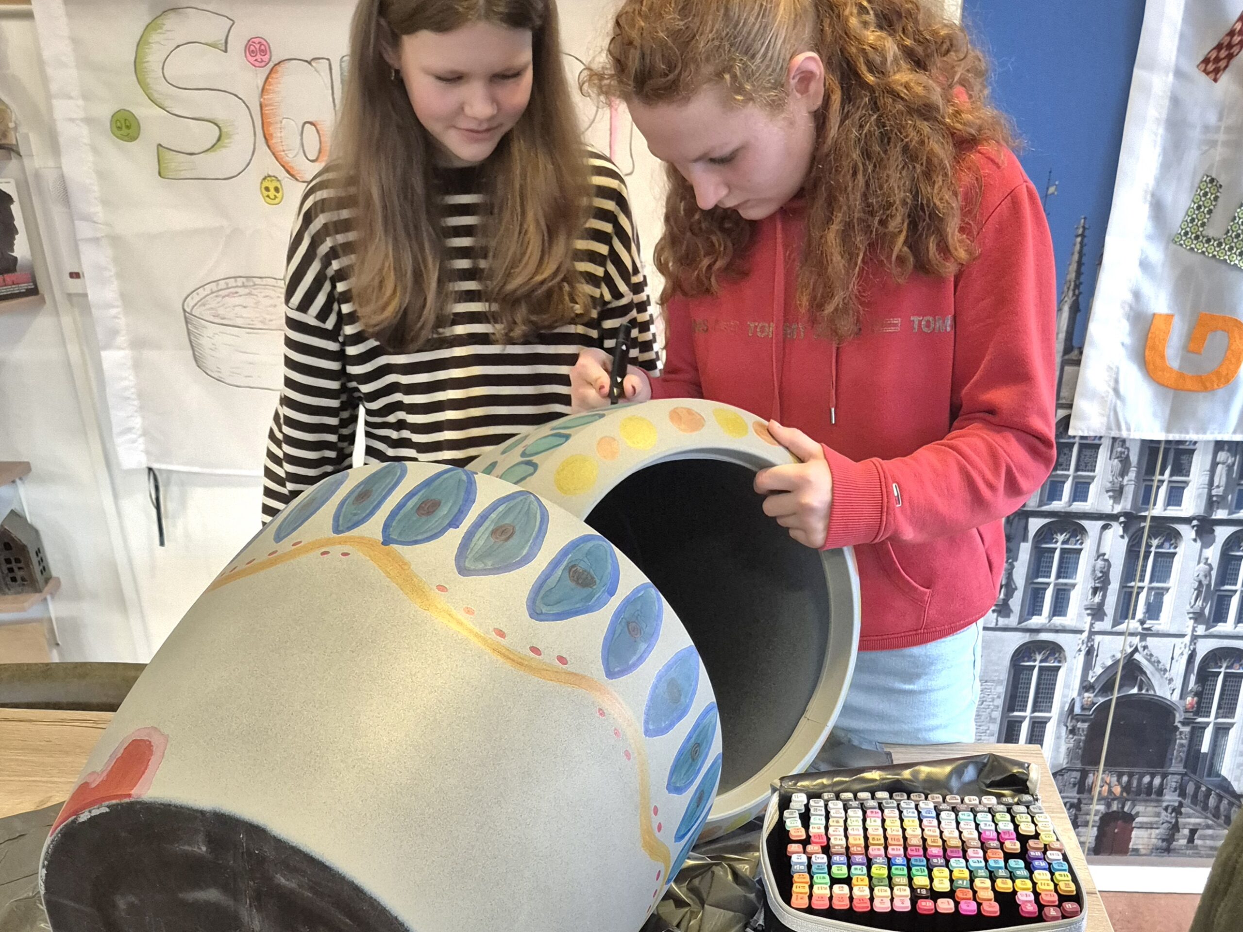 Hier zijn door een aantal vrijwilligers, deelnemers én scholieren van de middelbare school plantenbakken en vlaggen versierd. Met als doel: verbinding en ontmoeting. En dat is gelukt!